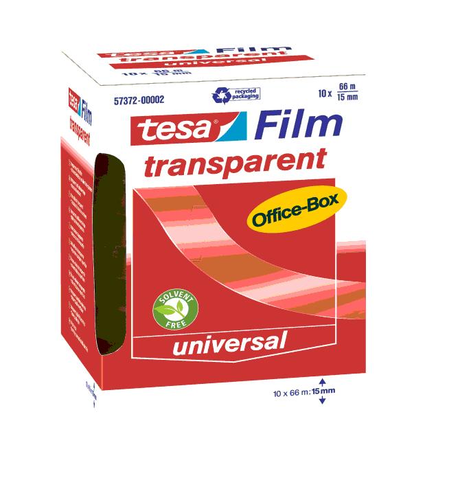 - TESA 57372. Länge: 66 m, Produktfarbe: Transparent, Material: Polypropylen (PP). Breite: 15 mm. Menge pro Packung: 10 Stück(e)