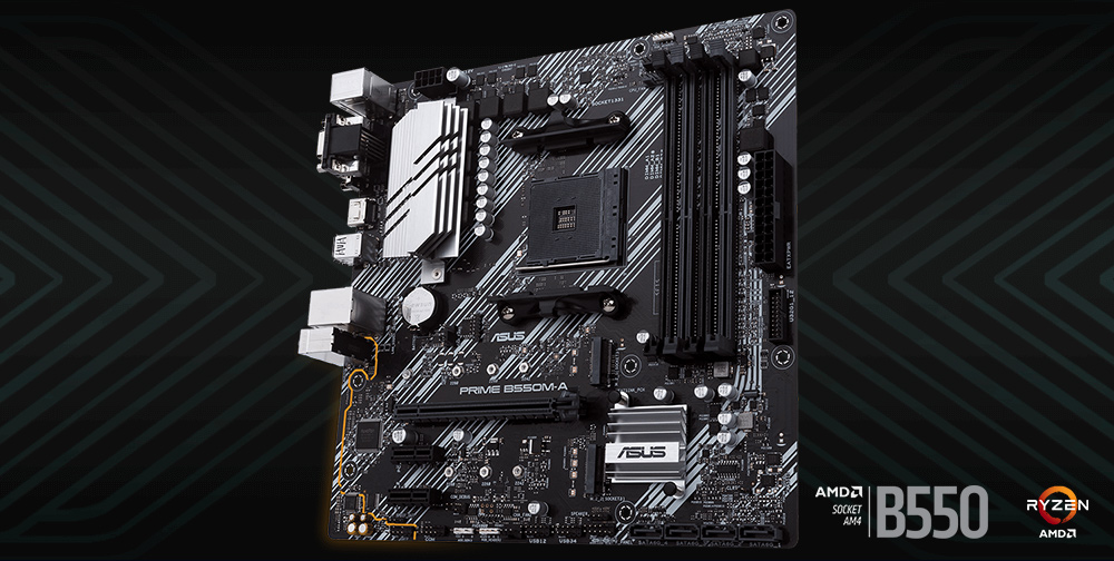 AMD B550 (Ryzen AM4) micro-ATX-Mainboard mit zwei M.2, PCIe 4.0, 1Gbit/s-Ethernet, HDMI/D-Sub/DVI, SATA 6Gbit/s, USB 3.2 Gen 2 Typ-A, und Unterstützung für Aura-Sync-RGB-Header AMD-AM4-Sockel: Bereit für AMD-Ryzen-Prozessoren der 3. Generation Umfassende Kühlung: VRM-Kühler, PCH-Kühler, und Fan Xpert 2+ Ultraschnelle Konnektivität: Zwei M.2-Steckplätze, PCIe 4.0, 1Gbit/s-Ethernet, USB 3.2 Gen 2 Typ-A Aura Sync RGB: Integrierte, Adressierbare Gen-2-Header für RGB-LED-Leuchtstreifen, ganz einfach synchronisierbar mit Aura-Sync-fähiger Hardware