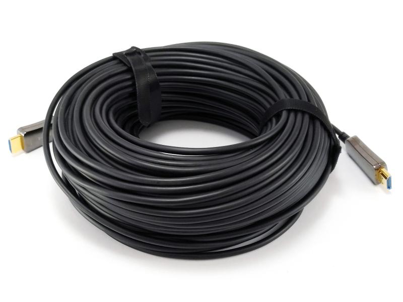 Die Aktiven Optischen HDMI-Kabel (AOC) der Serie 11943x von equip® sind eine Verkabelungstechnologie, die die gleichen elektrischen Eingänge wie ein herkömmliches Kupferkabel akzeptiert, aber Glasfasern zwischen den Anschlüssen verwendet, um HDMI-Signale verlustfrei und latenzfrei zu übertragen. Unser Hybridkabeldesign besteht aus Glasfasern und Kupferdrähten. Dabei werden die Hochgeschwindigkeits-TMDS-Signale über die optischen Multimode-Fasern übertragen, während die niederfrequenten Steuersignale über die Kupferdrähte übertragen werden. Die hohe Reichweite der aktiven optischen Leitungen ermöglichen Übertragungen über Entfernungen von bis zu 100m, ohne dass die Signalqualität sinkt oder eine separate Stromversorgung erforderlich ist.