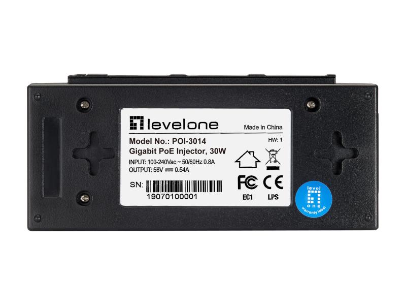 - LevelOne POI-3014. Ethernet Schnittstellen Typ: Schnelles Ethernet, Gigabit Ethernet, Ethernet LAN Datentransferraten: 10,100,1000 Mbit/s, Netzstandard: IEEE 802.3,IEEE 802.3ab,IEEE 802.3u. Maximaler Betriebsabstand: 100 m, Produktfarbe: Schwarz, LED-Anzeigen: PoE, Leistung. Power over Ethernet (PoE) Spannung: 52 V, Netzteil Eingansgsspannung: 100