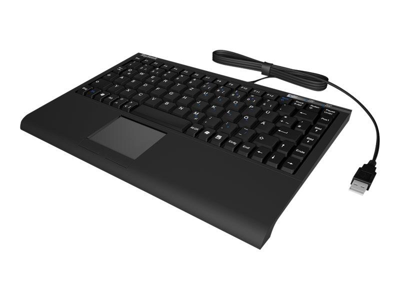 Die Tastatur spart Platz, da ein Nummernblock auf die Buchstabentasten integriert ist und über eine Funktionstaste angesteuert werden kann. Außerdem besitzt sie ein integriertes Smart Touchpad mit zwei Maustasten für Links- und Rechtsklick- und dadurch wird eine externe Maus ebenfalls unwichtig gemacht.