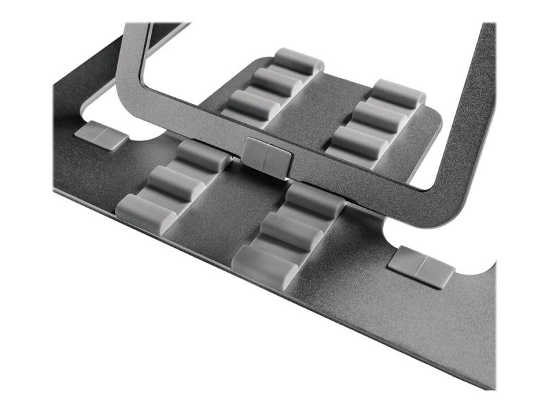 Durch das leichte, kompakte Design eignet sich der Ständer ideal, um ihn überall hin mitzunehmen. Die offene Konfiguration sorgt für eine gute Belüftung des Laptops und die rutschfesten Silikonkissen sowie die Sicherheits-Leisten sorgen für eine solide Positionierung.