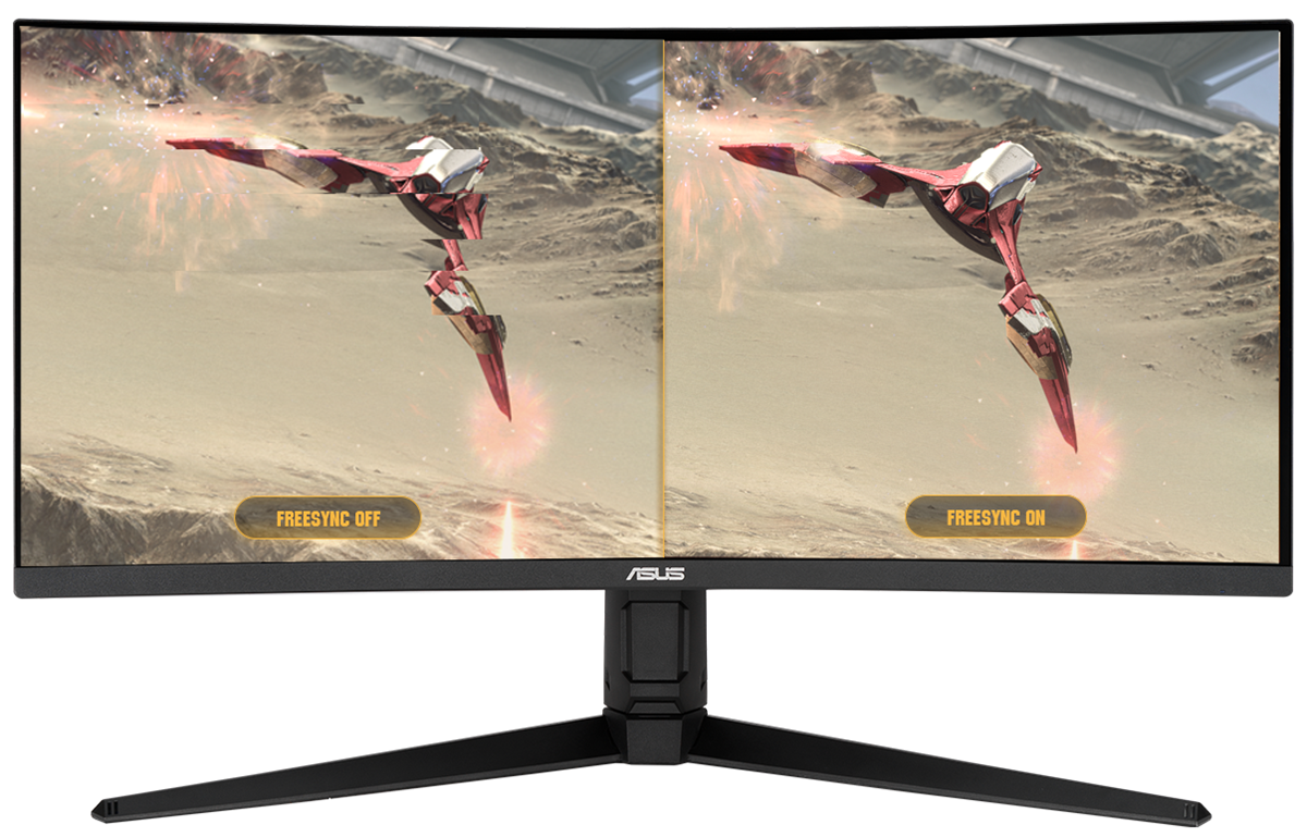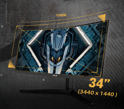 TUF Gaming VG34VQL1B Gaming-Monitor – 86,36cm (34 Zoll) WQHD (3440x1440), 165Hz (über 144Hz), Extreme Low Motion Blur, FreeSync Premium, 1ms (MPRT), Curved, DisplayHDR 40086,36cm (34 Zoll) WQHD (3440x1440) 1500R-Curved Gaming-Monitor mit einer ultra-hohen Bildwiederholfrequenz von 165Hz, der für professionelle Gamer und immersives Gameplay entwickelt wurdeDie ASUS-Extreme-Low-Motion-Blur-Technologie (ELMB™) ermöglicht eine Reaktionszeit von 1ms (MPRT), während Adaptive-Sync Ghosting und Tearing verhindert. Das Ergebnis ist eine gestochen scharfe Gaming-Grafik mit hohen Bildraten.Die FreeSync™-Premium-Technologie verhindert Tearing und ungleichmäßige FrameratenDie High-Dynamic-Range(HDR)-Technologie mit professionellem Farbraum liefert einen Kontrast und eine Farbleistung, die den Anforderungen der DisplayHDR™-400-Zertifizierung entsprichtUnterstützt sowohl Adaptive-Sync mit NVIDIA-GeForce*-Grafikkarten als auch FreeSync mit AMD-Radeon-Grafikkarten. *Kompatibel mit NVIDIA-GeForce-GTX-10-, GTX-16-, RTX-20- und neueren Grafikkarten.