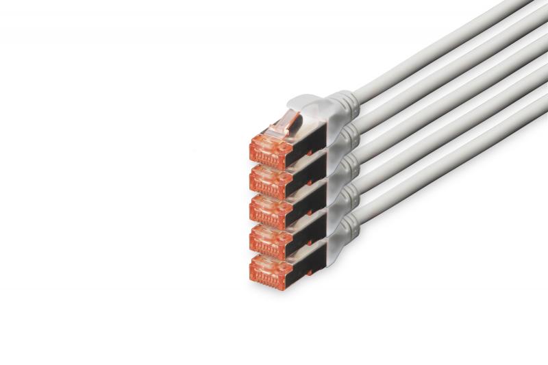 DIGITUS CAT 6 S/FTP Patchkabel, 5 Stück, 10m, grau