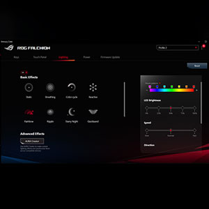 Über ein innovatives Touchpanel an der linken Seite der ROG Falchion kannst du auf komfortable Weise die Lautstärke einstellen oder Verknüpfungen zum Wechseln von Apps oder zum Kopieren und Einfügen anlegen. Sie kann auch für den Einsatz als Makrotaste programmiert werden, um eine intuitivere Steuerung im Spiel zu ermöglichen.
