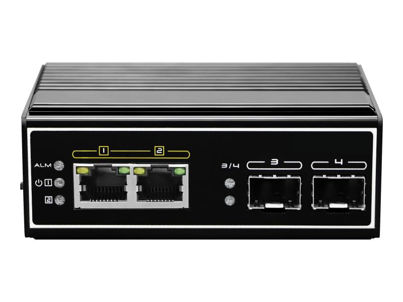 - 2 x 10/100/1000 (PoE) + 2 x Gigabit SFP