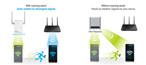 Mit unserer unkomplizierten Roaming-Assist-Technologie muss der Nutzer niemals manuell die Verbindungen zwischen dem RP-N12 und seinem ASUS-Router wechseln, wenn er sich zuhause von Ort zu Ort bewegt. Sobald diese Funktion einmal aktiviert ist, verbindet sich das Gerät automatisch mit dem stärksten WLAN-Signal, unabhängig davon, ob es nun vom Router oder Repeater stammt. Somit ist gewährleistet, dass der Nutzer immer die zuverlässigste Verbindung erhält, wo immer auch er sich im Haus befindet.