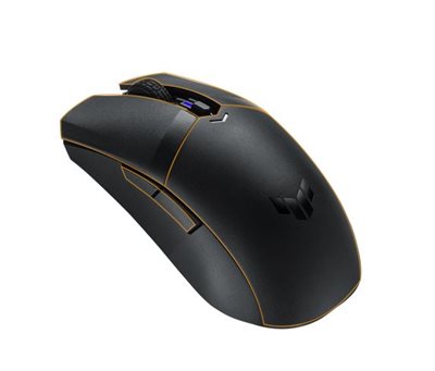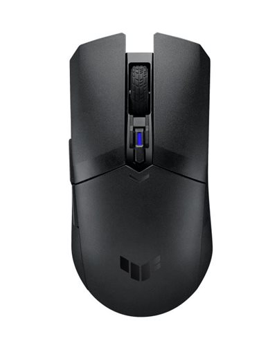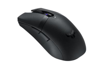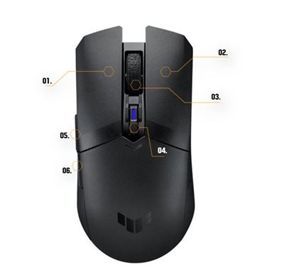 Die TUF Gaming M4 Wireless verfügt über sechs taktile und programmierbare Tasten, mit denen die Steuerung an jeden Spielstil angepasst werden kann. Die linke und die rechte Taste sind von der oberen Abdeckung getrennt, was zu einer geringeren Betätigungskraft und einem geringeren Tastenweg für schnellere und taktilere Klicks führt. Mit einem DPI-Schalter und einer Anzeige kann die Empfindlichkeit spontan eingestellt werden, während zwei strategisch platzierte Tasten auf der linken Seite und ein klickbares Scrollrad zusätzliche Steuerungsmöglichkeiten bieten.