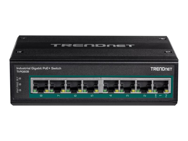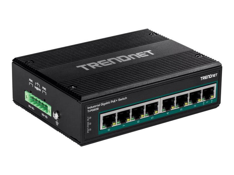 TRENDnet 8-Port Indus. Gigabit PoE+ DIN-Rail Switch (24-56V)