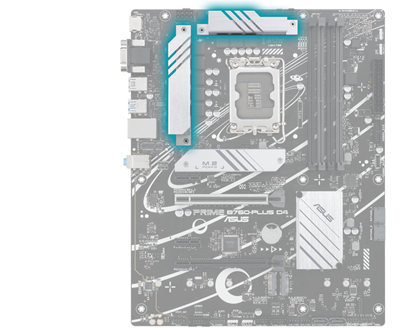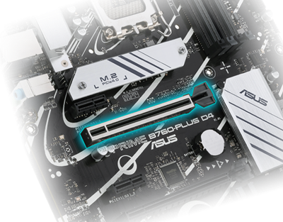 Die PRIME B760-PLUS D4 bietet insgesamt drei M.2-Steckplätze, die Datenübertragungsgeschwindigkeiten von bis zu 64 Gbit/s über PCIe 4.0 unterstützen und so schnellere Boot- und Ladezeiten für Betriebssysteme oder Anwendungen ermöglichen.
