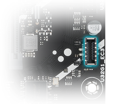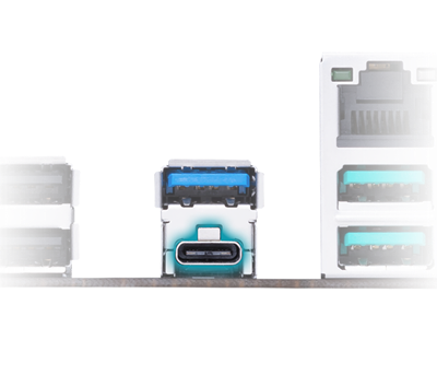 Eine ganze Reihe von USB-Anschlüssen unterstützt High-End-Rigs, die mit Peripheriegeräten ausgestattet sind, darunter ein USB 3.2 Gen 1 Type-C®-Frontpanel-Anschluss, der Datenübertragungsgeschwindigkeiten von bis zu 5 Gbit/s ermöglicht.