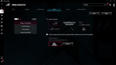 Grafische Benutzeroberfläche der Armoury Crate für die ROG Azoth
