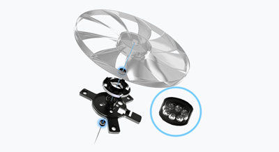 2x längere Lebenserwartung Die Narbe des Lüfters wird von einem doppelten Kugellager angetrieben, das bis zu doppelt so lange hält wie ein Gleitlager. *Die Abbildung dient nur als Referenz.