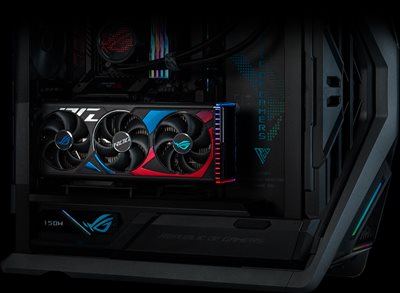 Das ROG Hyperion GR701 verfügt über einen hochentwickelten integrierten Grafikkartenhalter, dessen leichte, eloxierte Aluminiumkomponenten vertikal oder horizontal verwendet werden können, um lange Grafikkarten vor dem Durchhängen zu bewahren, und es bietet zusätzliche Kompatibilität mit dem ROG Herculx-Kartenhalter.