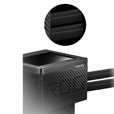 Mit der ROG Ryujin III bleibst du noch cooler als cool. Der große 3,5-Zoll-LCD-Bildschirm zeigt Live-Systemstatistiken oder deine eigenen Grafiken und animierten GIFs an. Darunter sorgt ein mit Axial-Tech verbesserter Lüfter für eine Reduzierung der VRM-Temperaturen auf dem Mainboard um bis zu 35 Grad Celsius, und eine Asetek-Pumpe und eine Coldplate der achten Generation sorgen für noch niedrigere CPU-Temperaturen. Die Flüssigkeit wird durch großzügig geflochtene Schläuche geleitet und durch einen Kühler mit größerer Kapazität und zwei leisen 120-mm Noctua-Lüftern gekühlt.