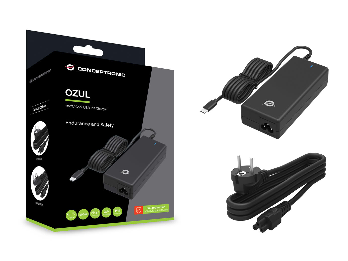 Dieses Ladegerät nutzt die fortschrittliche Galliumnitrid (GaN)-Technologie und bietet bis zu 100 W Gesamtleistung für schnelleres und effizienteres Laden. Es unterstützt eine Reihe von Ausgangsoptionen von 5,0 V bis 20,0 V und gewährleistet so die Kompatibilität mit Geräten von Smartphones bis zu Laptops. Zu den verbesserten Sicherheitsfunktionen gehören integrierte Schutzvorrichtungen gegen Überlastung, Kurzschluss und Überhitzung, die die Sicherheit des Ladegeräts und der angeschlossenen Geräte gewährleisten. Das Ladegerät verfügt über USB Power Delivery (PD) 3.0 für schnelles Laden und ist konform mit Programmable Power Supply (PPS), um die Ladeeffizienz zu maximieren und die Wärmeentwicklung zu minimieren. Außerdem verfügt es über ein integriertes 1,5 m langes USB-C-Kabel und ein abnehmbares 1,2 m langes Netzkabel für Komfort und Vielseitigkeit.