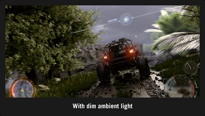 Durch den hohen Kontrast werden dunkle Bereiche und Schatten auf dem Bildschirm aufgehellt, damit die Spieler/innen versteckte Feinde besser erkennen können.