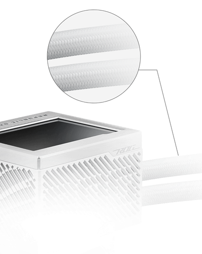 ROG Ryujin III 240 ARGB White Edition All-in-One-Flüssig-CPU-Kühler mit 3,5"-LCD, Asetek-Pumpe der 8. Generation mit integriertem Lüfter und 2x ROG 120-mm-Kühler mit magnetischen Daisy-Chain-ARGB-Lüftern. Ein 3,5-Zoll-LCD-Bildschirm bietet sofortige Überwachung der Hardware-Informationen und anpassbare GIF-Animationen, jetzt mit doppelt so viel Speicherplatz Die neueste Asetek-Pumpe der 8. Generation mit einem 3-Phasen-Motor bietet ultimative Kühlleistung, höheren Durchfluss und geringere Impedanz sowie Geräuschreduzierung Ein integrierter Lüfter mit einem neuen ringförmigen Rahmendesign und fortschrittlichen Luftströmungskanälen reduziert die Hitze im VRM-Bereich Premium ROG ARGB magnetische Daisy-Chain-Lüfter mit Gen 2 LEDs ermöglichen individuelle Lichteffekte Armoury Crate bietet eine vollständige Steuerung der Pumpen-, Lüfter- und Kühlerlüfterdrehzahlen und ermöglicht die Anzeige von benutzerdefinierten Animationen und Systemstatistiken auf dem LCD-Bildschirm. Eine kostenlose AIDA 64 Lizenz für ein Jahr zur erweiterten Systemüberwachung ist ebenfalls enthalten