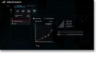 Diese Generation von ROG-All-in-One-Kühlern enthält jetzt eine Software, mit der du die Geschwindigkeiten deiner Pumpe und des eingebauten Lüfters steuern kannst, und zwar auf eine Weise, die FanXpert-Veteranen sofort bekannt vorkommen dürfte.