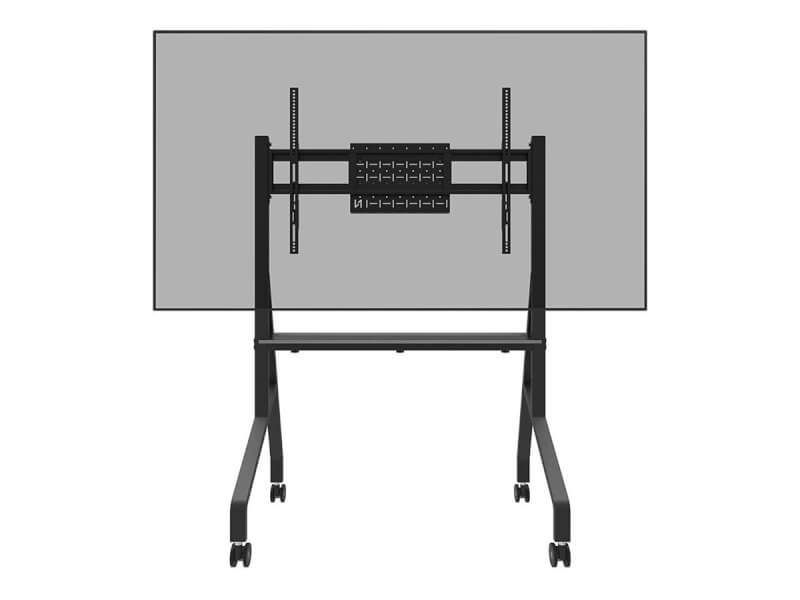 Der Neomounts MOVE Go ist teilweise vormontiert verpackt und kann innerhalb weniger Minuten installiert werden. Der Wagen verfügt über praktische Griffe und vier solide 7,5 cm große, feststellbare Doppelrollen, die es Ihnen ermöglichen, den Bodenständer zu bewegen und zu benutzen, wo immer Sie wollen. Dank der großen Lenkrollen stellen Schwellen oder Teppichböden für den FL50-525BL1 keine Herausforderung dar. Ein Multimedia-Regal (vorne und hinten montierbar) mit einer maximalen Tragfähigkeit von 10 kg und ein AV-Hardware-Rack sind im Lieferumfang enthalten.