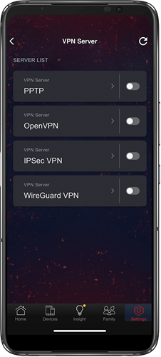 Der ROG Rapture GT-BE98 unterstützt verschiedene VPN-Protokolle, darunter das neueste WireGuard® für verschiedene Szenarien. Die Site-to-Site-VPN-Funktion sorgt außerdem dafür, dass deine Daten sicher zwischen Routern in verschiedenen Netzwerken übertragen werden.
