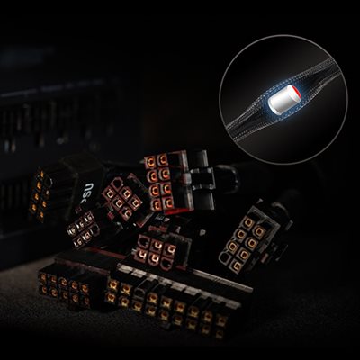 Mit vollständig modularen Kabeln bleibt dein System aufgeräumt und übersichtlich. Ein 24-Pin-, zwei 6+2-Pin-PCI-E- und zwei 8-Pin-CPU-Kabel werden mit integrierten Kondensatoren geliefert, um die Spannungswelligkeit zu reduzieren, während dir der mitgelieferte CableMod-Coupon eine noch bessere Individualisierung ermöglicht.