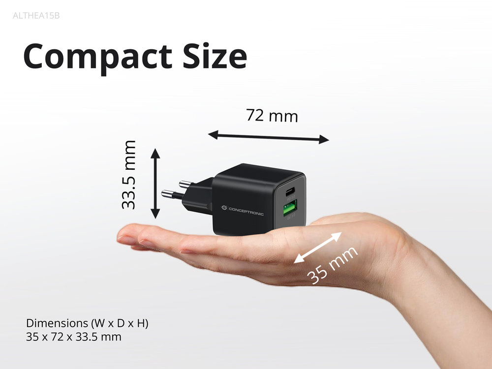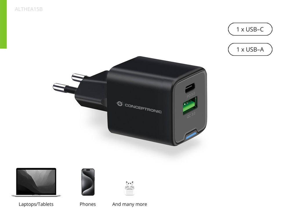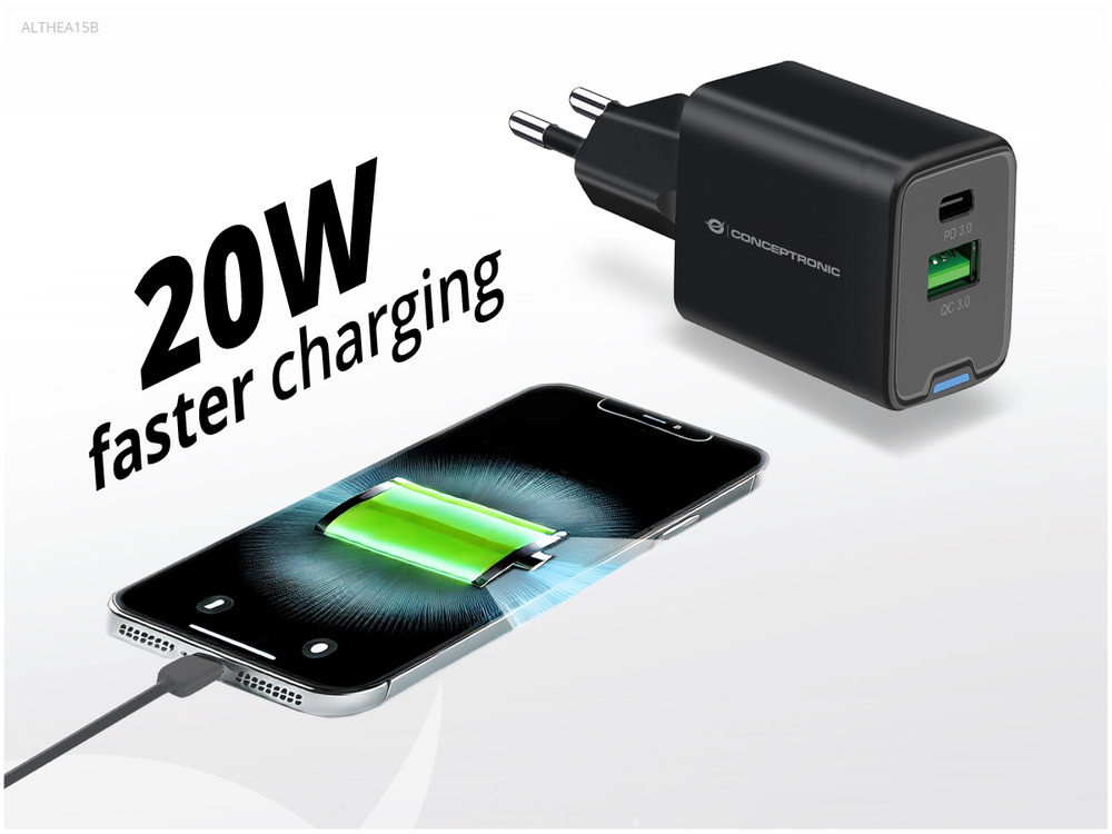 - Conceptronic Ladegerät 2Port 20W 1xUSB-C 1xUSB-A Desk PD sw