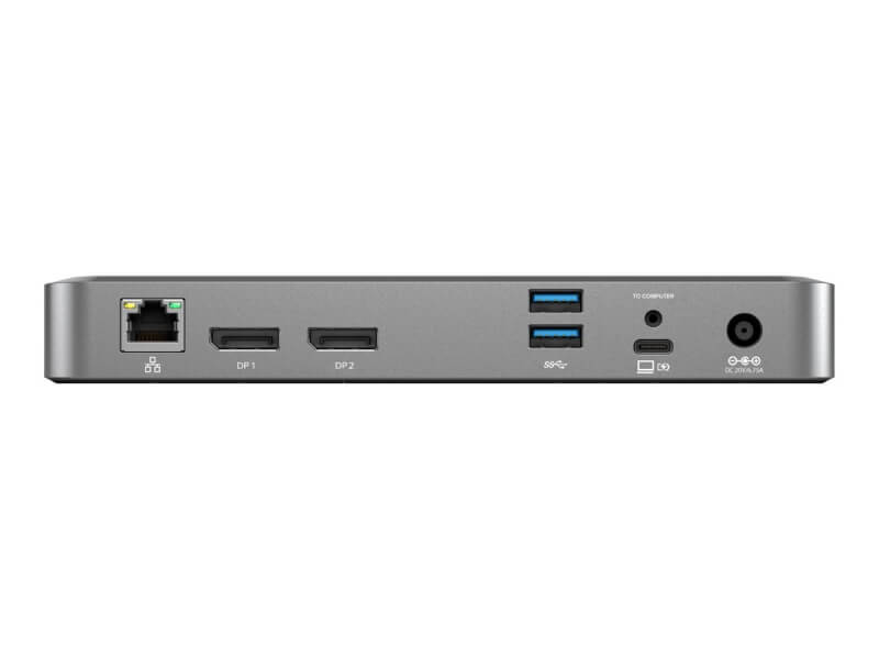 Die DX2 ist eine robuste Dockingstation mit einer glatten Metalloberfläche in den eleganten Farben Spacegrau und Schwarz. Dank ihrer hochwertigen Designmerkmale und Ästhetik passt sie perfekt auf jeden Schreibtisch.