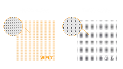 Im Vergleich zu 1024-QAM bei WiFi 6/6E können mit 4096-QAM (Quadratur-Amplituden-Modulation)* größere Datenmengen in jedem Signal dichter zusammengefasst werden, was eine bis zu 20% effizientere Datenübertragung ermöglicht.