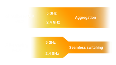 Multi-Link Operation (MLO)* ermöglicht eine pufferfreie Verbindung durch intelligentes Kombinieren und Umschalten zwischen dem 2,4-GHz- und dem 5-GHz-Band. Der TUF Gaming BE3600 ist so konstruiert, dass er mit allen WiFi 7-Geräten zukunftssicher ist, unabhängig von dem MLO-Modus, den sie verwenden*.