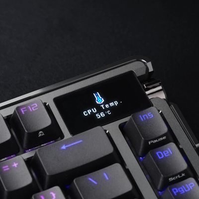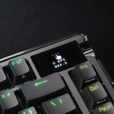 Die ROG Azoth Extreme ist eine anpassbare 75%-Gaming-Tastatur mit einem Premium-Gehäuse aus Aluminium-Legierung und einem Metallrahmen. Mit dem ROG Polling Rate Booster bietet er eine Melderate von 8000 Hz und eine Akkulaufzeit von über 1600 Stunden im ROG SpeedNova 2,4 GHz Wireless-Modus. Der verbesserte OLED-Touchscreen und der Drei-Wege-Drehknopf ermöglichen die Überwachung des Systems und schnelle Einstellungen. Die Positionierungsplatte aus Kohlefaser sorgt für ein knackiges Tippgeräusch während drei Dämpfungsschichten Vibrationen absorbieren. Eine verstellbare Dichtungshalterung mit einem Paddelschalter bietet zwei Schreibeinstellungen.