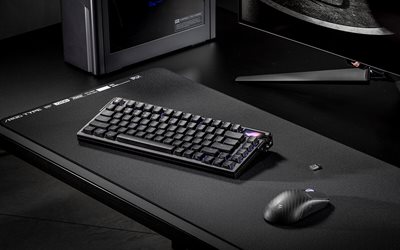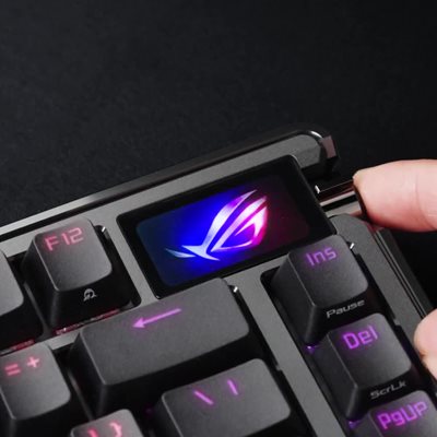 75% Gaming-Tastatur mit einem Gehäuse aus Aluminiumlegierung, einer Positionierungsplatte aus Kohlefaser, einer verstellbaren Dichtungshalterung, einem OLED-Touchscreen mit Dreifach-Steuerungsknopf, einer verlängerten Handgelenkstütze, magnetischen Füßen, Tri-Mode-Konnektivität mit 2,4-GHz-SpeedNova-Technologie, im laufenden Betrieb austauschbaren, vorgeschmierten mechanischen ROG NX-Switches und Mac-Unterstützung Hervorragende Verarbeitungsqualität: Das Gehäuse aus einer Aluminiumlegierung mit Metallrahmen sieht hochwertig aus und bietet gleichzeitig eine erstklassige kabellose Leistung Positionierungsplatte aus Kohlefaser: Sorgt für ein knackiges Tippgefühl und eine gute Akustik und reduziert gleichzeitig effektiv die Vibrationen des Tastenanschlags Einstellbare Dichtungshalterung: Einfacher Wechsel zwischen zwei gepolsterten Tippgefühlen über einen Schnellumschalter Vollfarbiger OLED-Touchscreen: Sieh dir Systeminformationen an und passe die Tastatureinstellungen an; der eingebaute Drei-Wege-Drehknopf ermöglicht sofortige Anpassungen. Erweiterte Handgelenkstütze aus Silikon: Sorgt für ein komfortables Tipperlebnis und behält die Festigkeit über die Zeit bei Tri-Mode-Verbindung: Verbinde dich mit Bluetooth® und schalte zwischen drei Geräten gleichzeitig um, mit dem drahtlosen 2,4-GHz-RF-Modus mit niedriger Latenz oder dem kabelgebundenen Standard-USB-Modus Verbessertes Tippgefühl: Vorgeölte mechanische ROG NX-Switches und geräuschdämpfende Schaumstoffe sorgen für einen sanfteren Tastenanschlag und eine bessere Akustik.