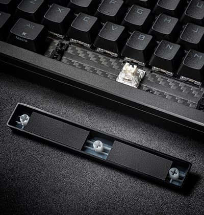 Die Leertaste hat eine zusätzliche Schmierung und Modifikationen für eine bessere Akustik und ein besseres Tippgefühl.