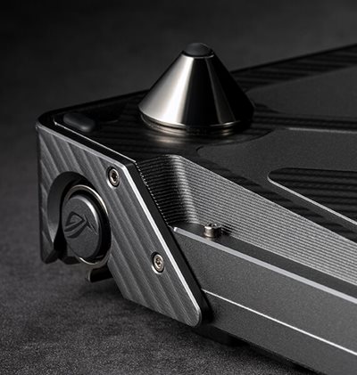 Die ROG Azoth Extreme besticht durch ihre erstklassige Ästhetik mit einem Gehäuse aus Aluminiumlegierung und einem Metallrahmen mit markantem Klingenmuster. Das untere Gehäuse wird in 12 aufwändigen Fertigungsschritten hergestellt, darunter Sandstrahlen, Eloxieren, CNC-Bearbeitung und vieles mehr.