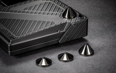 Die Azoth Extreme wird mit zwei Paar unterschiedlich hohen Magnetfüßen geliefert, die ihr drei verschiedene Neigungswinkel ermöglichen, je nach Vorliebe des Nutzers.