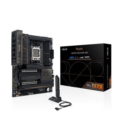 AMD X870E ATX-Mainboard, PCIe® 5.0 x16-Steckplätze mit voller Unterstützung für Next-Gen-GPUs, 16+2+2 Leistungsstufen, DDR5, Dual USB4®, 10 Gb & 2,5 Gb LAN, WiFi 7, vier M.2-Steckplätze Bereit für fortschrittliche KI-PCs: Entwickelt für die Zukunft des KI-Computings, mit der für anspruchsvolle KI-Anwendungen erforderlichen Leistung und Konnektivität AMD AM5-Sockel:⯠Bereit für AMD Ryzen™ Desktop-Prozessoren der Serien 9000, 8000 und 7000Robuste Leistung: 16+2+2 gepaarte Leistungsstufen, ProCool II Stromanschlüsse, hochwertige Legierungsdrosseln und langlebige KondensatorenZukunftssichere Konnektivität:â¯Zwei USB4®-Anschlüsse, 10-Gbit- und 2,5-Gbit-Ethernet, WiFi 7, PCIe 5.0 x16-Steckplatz mit voller Unterstützung für Next-Gen-GPUs, zwei PCIe® 5.0- und zwei PCIe 4.0 M.2-Steckplätze und ein USB 20Gbps-Frontanschluss mit 30W PD/Quick Charge 4+ Exklusive AI- und Übertaktungstechnologien: AI Overclocking, AI Cooling und AI Networking II, Dynamic OC Switcher und Core Flex DIY-freundliches Design:â¯PCIe Slot Q-Release Slim mit SafeSlot, M.2 Q-Release, M.2 Q-Slide, M.2 Q-Latch, Q-Antenna, BIOS FlashBack™, Q-Connector ProArt bietet Ihnen mehr:â¯ProArt Creator Hub mit Farbmanagement arbeitet mit den proprietären Dienstprogrammen von Pantone zusammen, um die Systemsteuerung und kreationsbezogene Einstellungen aus einer Hand zu ermöglichenErweiterte Sicherheit:â¯USB-Port-Verwaltung, Software-Blacklisting und Regedit-On/Off-Steuerung über ASUS Control Center Express