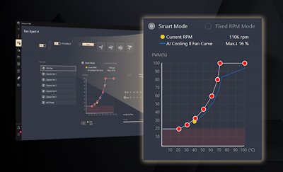 Optimierte Thermik und reduzierte Geräuschentwicklung durch dynamische Anpassung der Lüfterdrehzahlen auf der Grundlage der CPU-Temperaturen.