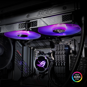 All-in-One CPU-Flüssigkeitskühlung mit Aura Sync, für Intel®LGA 1150/1151/1155/1156/1200/2066 und AMD AM4/TR4, inklusive zwei adressierbaren ROG-140mm-RadiatorlüfternDie Asetek-Pumpe der siebten Generation liefert mit einem Betriebsbereich ab 800rpm eine außergewöhnliche Kühlung und minimale Geräuschentwicklung. Die ROG-Radiatorlüfter sorgen für optimierten Luftstrom und statischen Druck. Eine individuell adressierbare RGB-Beleuchtung auf dem NCVM-beschichteten Pumpengehäuse und den Radiatorlüftern unterstreicht das schlanke, moderne Design. Die Optik passt perfekt zum Style der ROG-Mainboards, um dein System spektakulär in Szene zu setzen. Verstärkte, ummantelte Schläuche bieten eine höhere Haltbarkeit.