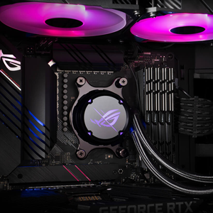Das aufwändige neue Design der ROG Strix LC II 280 ARGB präsentiert sich in der ikonischen ROG-Optik, und jedes Detail verkörpert den Geist von ROG Strix. Die Aura-Sync-Unterstützung für das neue beleuchtete ROG-Logo auf dem Pumpendeckel und die adressierbaren RGB-Radiatorlüfter ermöglichen es, die Lichteffekte mit den ROG-Systemkomponenten abzustimmen und deinen persönlichen Stil zum Ausdruck zu bringen. Zusätzlich ergänzt der eingravierte ROG-Schriftzug auf der Seite des Kühlers die schimmernde Beschriftung auf den Naben der einzelnen Lüfter.