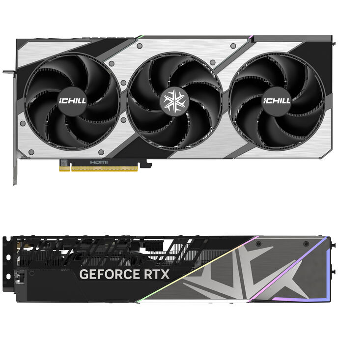 Inno3D iChill GeForce RTX 5080 X3. Grafikprozessorenfamilie: NVIDIA, GPU: GeForce RTX 5080, Prozessortaktfrequenz: 2295 MHz. Separater Grafik-Adapterspeicher: 16 GB, Grafikkartenspeichertyp: GDDR7, Breite der Speicherschnittstelle: 256 Bit. DirectX-Version: 12 Ultimate, OpenGL-Version: 4.6. Schnittstelle: PCI Express 5.0. Kühlung: Aktiv, Anzahl Lüfter: 3 Lüfter