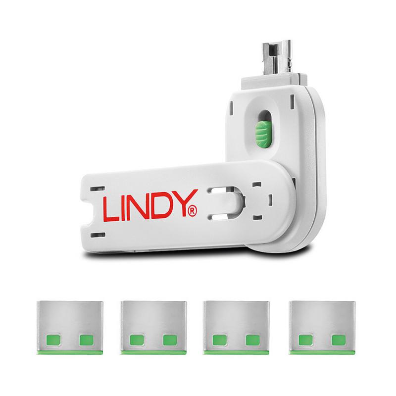 Lindy USB Portschlösser 4xGrün mit Schlüssel