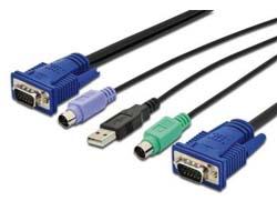 DIGITUS KVM-Kabel D-Sub15 -> 2xPS/2+USB+D-Sub15 St/St 5.00m
