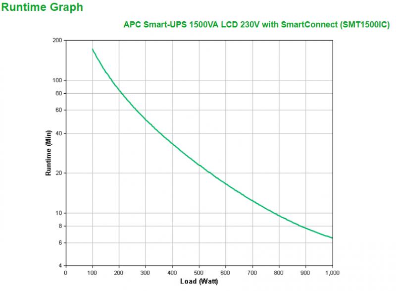 6.5 min bei Volllast ¦ 23.1 min bei halbe Beladung ¦ 301 min bei 50 Watt ¦ 172 min bei 100 Watt ¦ 84 min bei 200 Watts ¦ 50.6 min bei 300 Watt ¦ 33.3 min bei 400 Watts ¦ 23.1 min bei 500 Watts ¦ 16.6 min bei 600 Watts ¦ 12.4 min bei 700 Watts ¦ 9.6 min bei 800 Watts ¦ 7.7 min bei 900 Watts ¦ 6.5 min bei 1000 Watts