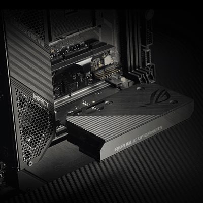 Der ungewöhnliche Mini-DTX-Formfaktor des Impact wurde bewusst gewählt. Viele Mini-ITX-Gehäuse bieten genügend Platz für eine Dual-Slot-Grafikkarte. Das bedeutet, dass sich unter dem unteren PCIe®-Steckplatz normalerweise ungenutzter Platz befindet – Platz, der genutzt werden kann, um weitere Komponenten zu installieren oder zusätzliche Features zu integrieren. Das Impact ist geringfügig größer als ein Mini-ITX-Mainboard, passt aber dennoch in den Großteil der Mini-ITX-Gehäuse. Den zusätzlichen Platz auf der Platine nutzen die ROG-Ingenieure, um weitere Features einzubauen.