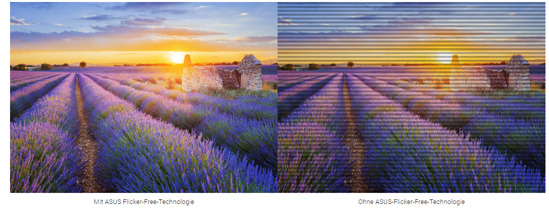 Müde und angestrengte Augen gehören der Vergangenheit an. Der ZenScreen MB16ACE unterstützt die vom TÜV Rheinland zertifizierte ASUS Flicker-Free-Technologie, welche Bildschirmflimmern reduziert und somit ein besonders komfortables Seherlebnis bietet. Dadurch werden Ermüdungserscheinungen und andere schädliche Effekte verhindert, die besonders durch stundenlanges Betrachten von Videos auf dem Bildschirm entstehen können.