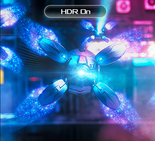 Die HDR-Technologie unterstützt ein breites Spektrum von Leuchtdichten, um einen größeren Farbbereich und einen höheren Kontrast als bei herkömmlichen Monitoren zu liefern. Das extrem helle Weiß und das tiefste Schwarz ermöglichen eine nie dagewesene Brillanz bei der Darstellung von Details. Zusätzlich wird eine Spitzenhelligkeit von 400cd/m² erreicht, um die Anforderungen der DisplayHDR™400-Zertifizierung zu erfüllen.