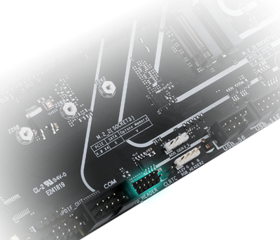 Verbesserungen am Trace-Routing-Design ermöglichen den neuesten Intel-Prozessoren einen verbesserten Zugang zur Speicherbandbreite. Die ASUS OptiMem II-Technologie bildet die Signalpfade des Speichers sorgfältig über verschiedene PCB-Lagen ab, um die Pfaddistanz zu verringern, und fügt Abschirmungszonen hinzu, die das Übersprechen deutlich reduzieren.
