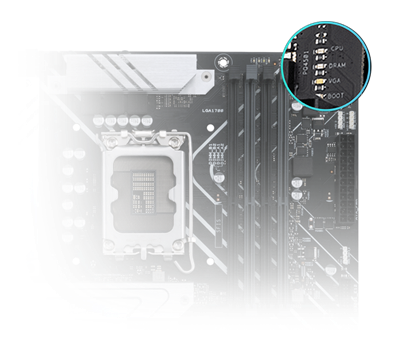 Mit den integrierten Q-LED-Fehlerbehebungsleuchten können PC-Bauer schnell feststellen, ob die wichtigsten Komponenten - CPU, Arbeitsspeicher, Grafikkarte, Laufwerke - während des Starts normal funktionieren.