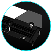 Metalleinsätze sorgen dafür, dass die Grafikkarten beim Einbau richtig ausgerichtet sind.
