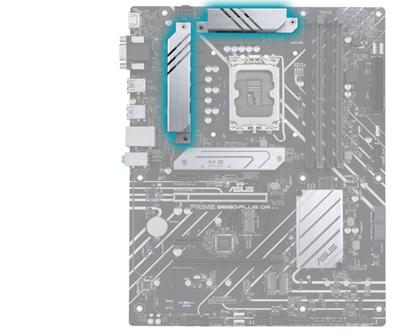 Robustes Power Design Eine stabile Stromversorgung ist wichtig, um das letzte Quäntchen Leistung aus den Intel-Prozessoren der 12. Generation herauszuholen. Das PRIME B660-PLUS D4 ist auf die Anforderungen dieser High-Core-CPUs ausgerichtet.